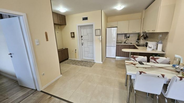 Поморие . Двухкомнатная квартира в «Айвазовский парк». площадь 59,15 квадратных метров. 3 этаж. Состоит из гостиной с кухней, одной спальни, ванной с туалетом и террасы с видом во двор. Продаётся с меблировкой и техникой. Лифты. Такса поддержки всего 150 евро в год. Акт 16.
